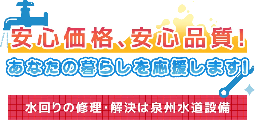 大阪府泉大津市を拠点に、水回りのトラブルを迅速に解決いたします。トイレや排水の詰まり、蛇口の水漏れ、漏水調査、給湯器の故障、機器の交換工事など、戸建てからマンションまで、あらゆる問題を安心価格で対応いたします。